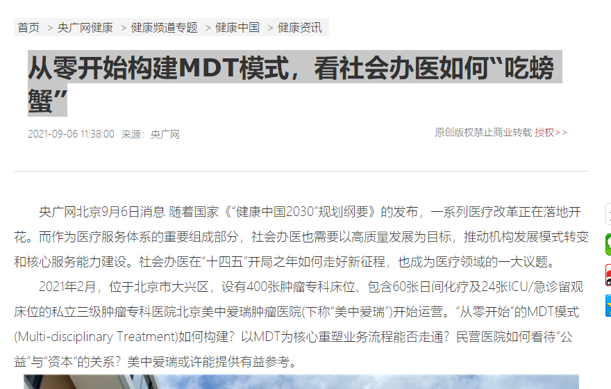 从零开始构建MDT模式,看社会办医如何“吃螃蟹”