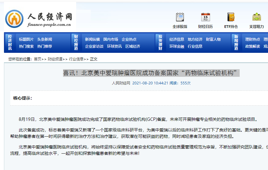喜讯!北京美中爱瑞肿瘤医院成功备案国家“药物临床试验机构”